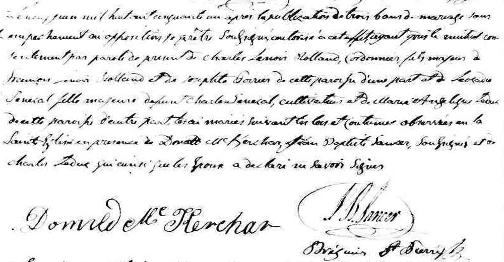 Mariage de Léocadie Sénécal et Charles Lenoir Rolland à Notre Dame de Montréal le 9 juin 1851
