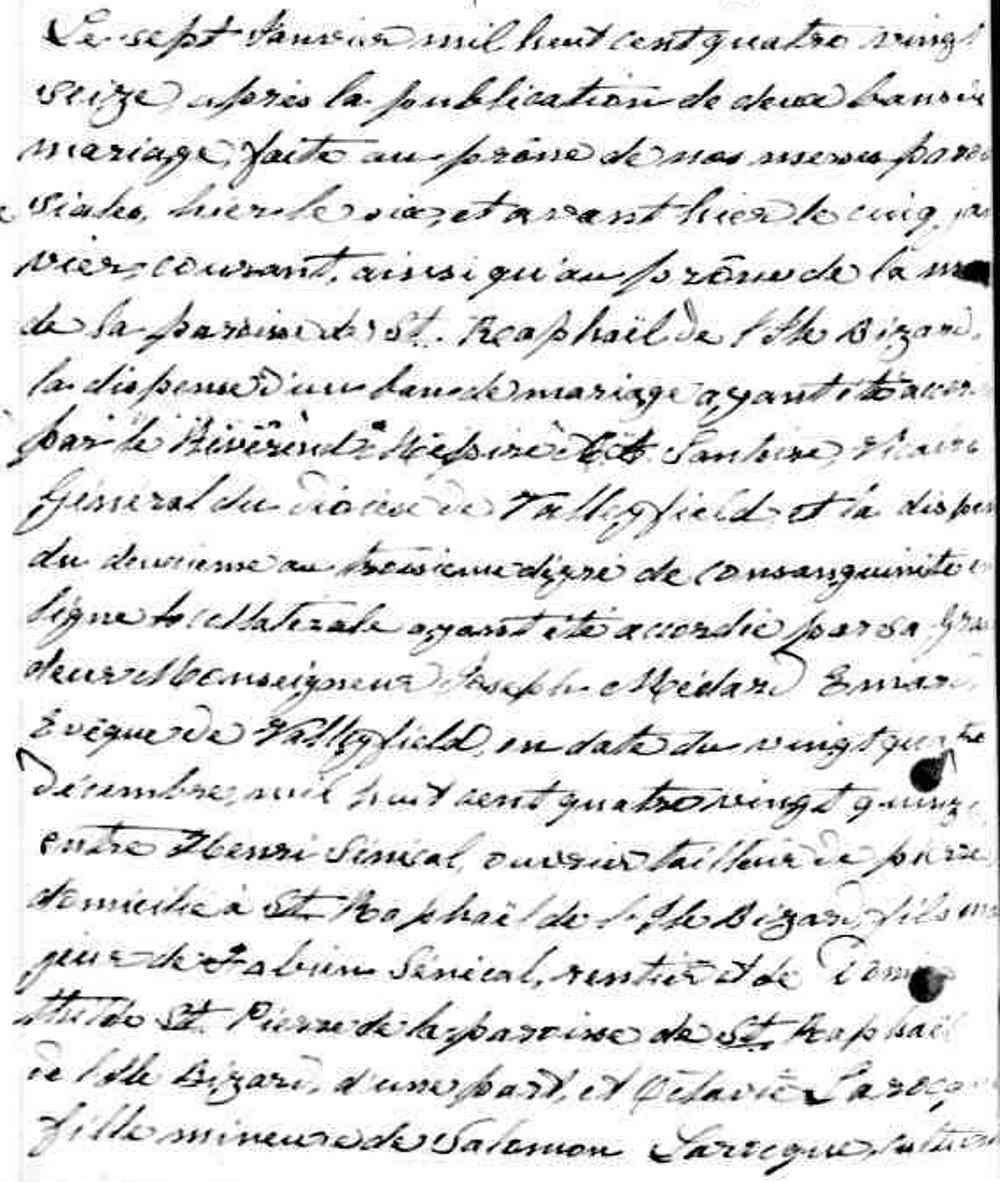 Mariage de Amédée Henri Sénécal et Octavie Larocque à Sainte Marthe, comté de Vaudreuil, le 7 janvier 1896