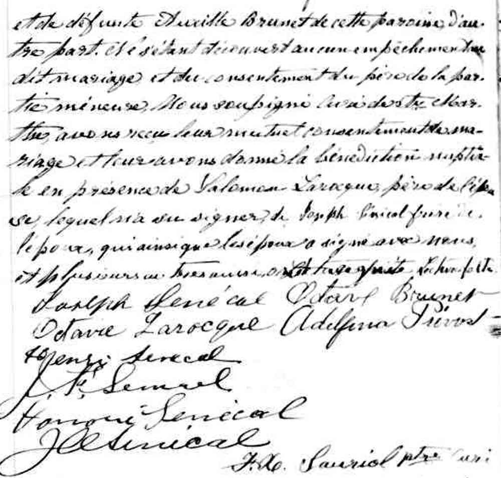 Mariage de Désiré Sénécal et Joséphine Rolland à Notre Dame de Grâce le 7 mars 1859