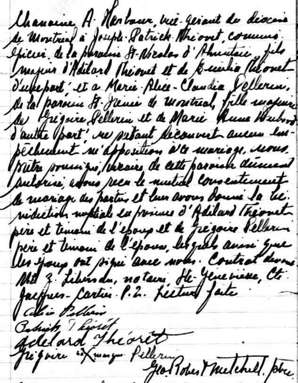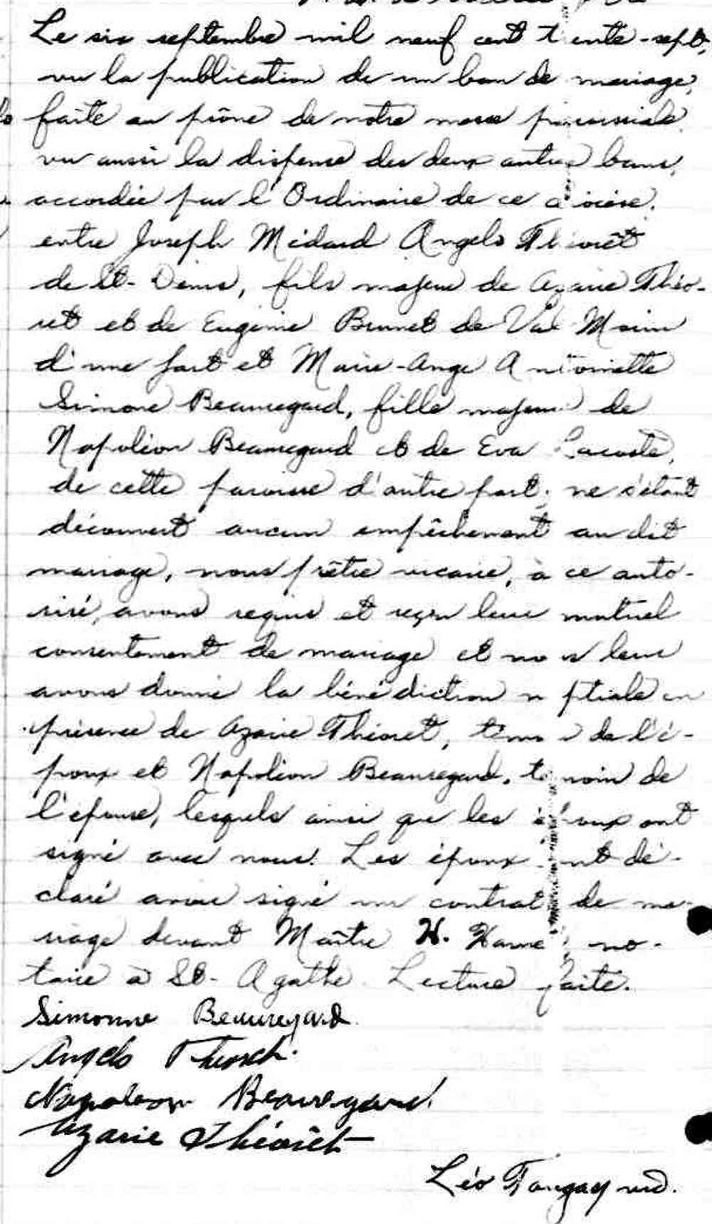 Mariage de Angelo Théoret et Simone Beauregard à Saint Denis de Montréal le 15 septembre 1936