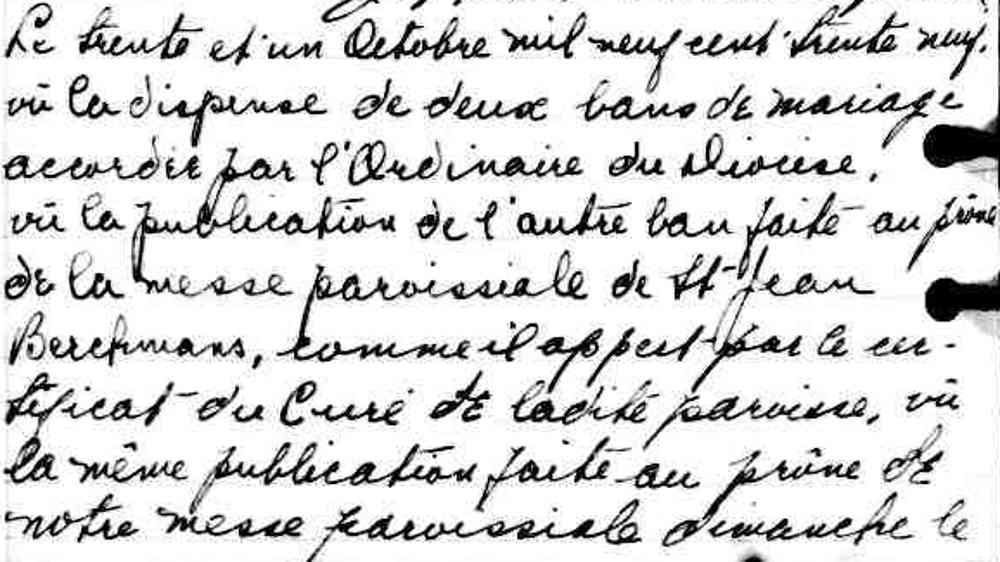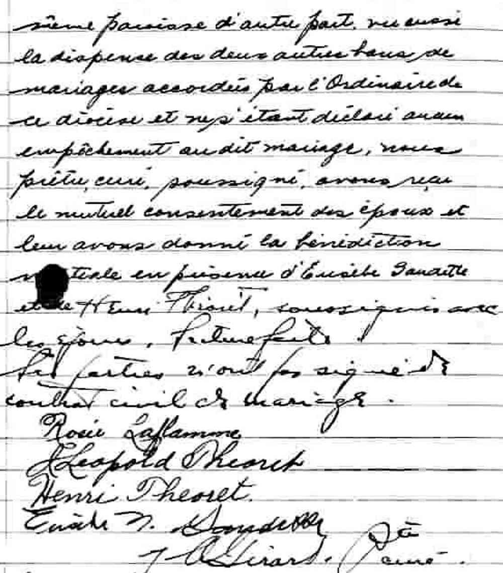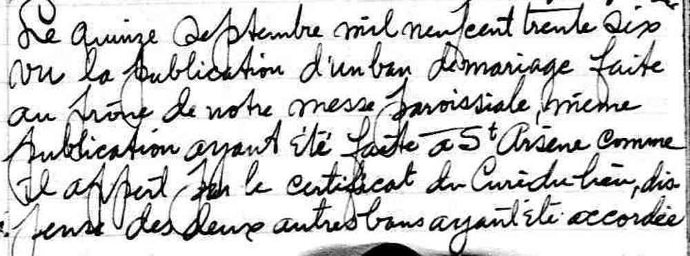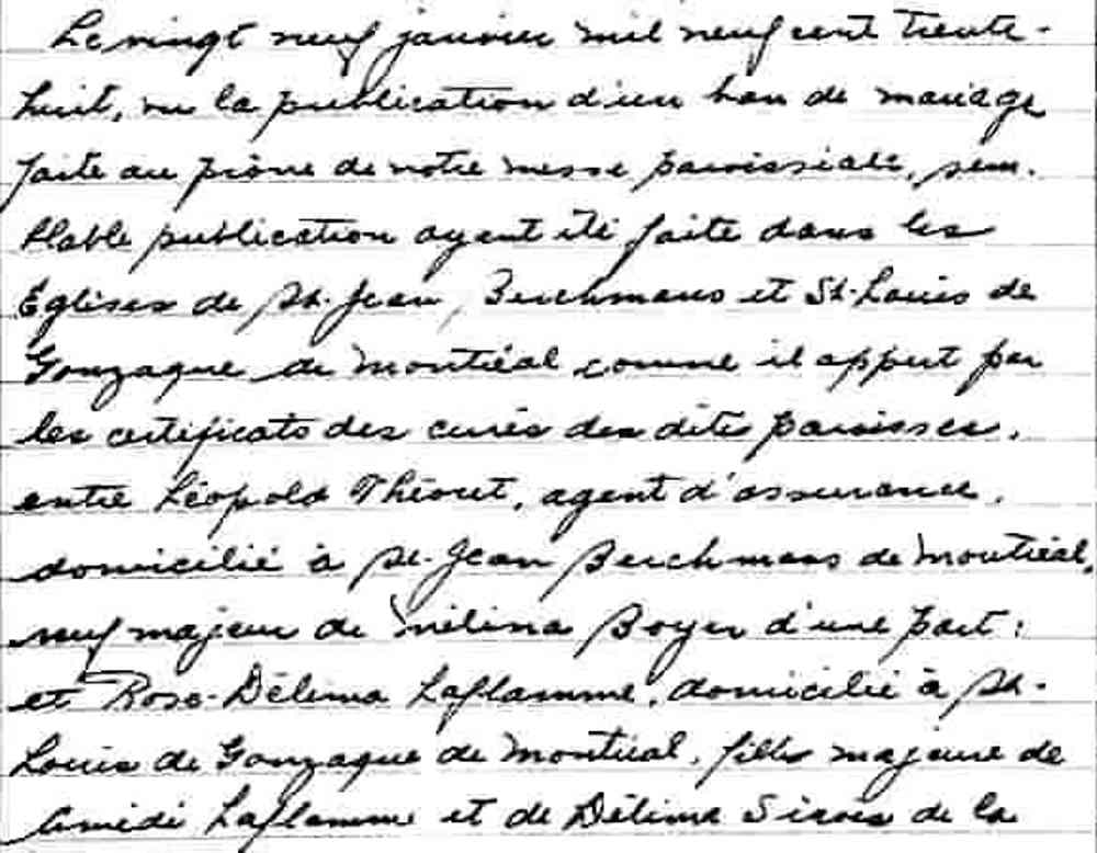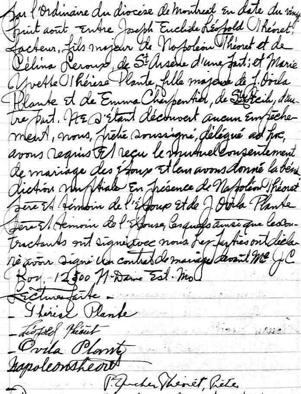 Mariage de Léopold Théoret et Thérèse Plante à Sainte Cécile de Montréal le 15 septembre 1936