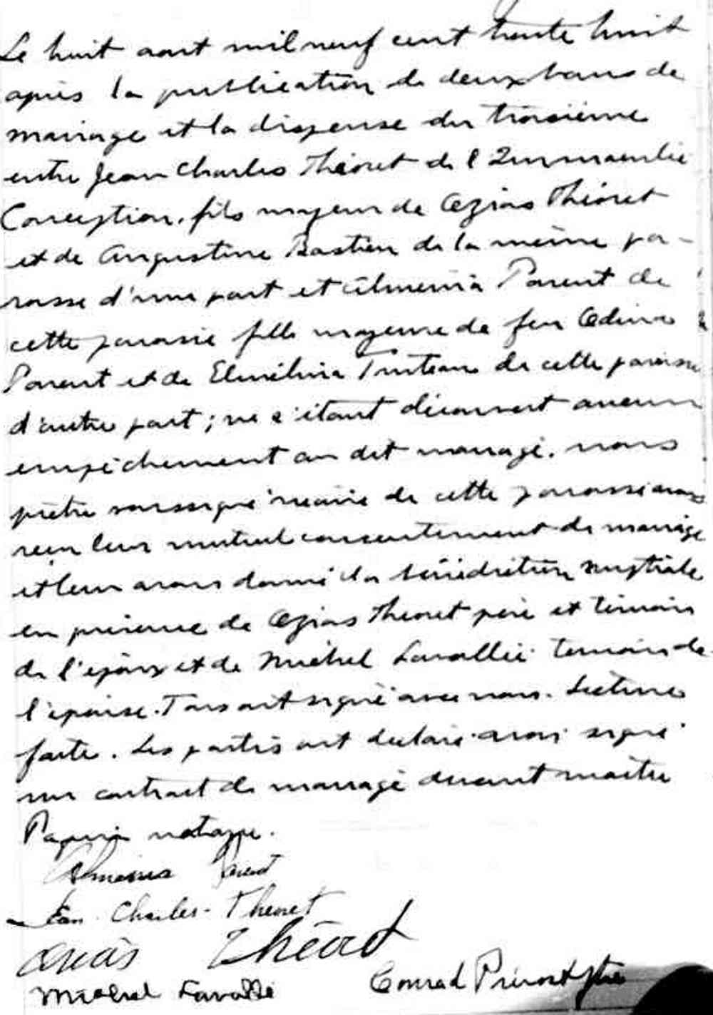 Mariage de Jean Charles Théoret et Almenia Parent à Saint Eusère de Verceuil de Montréal le 8 août 1938