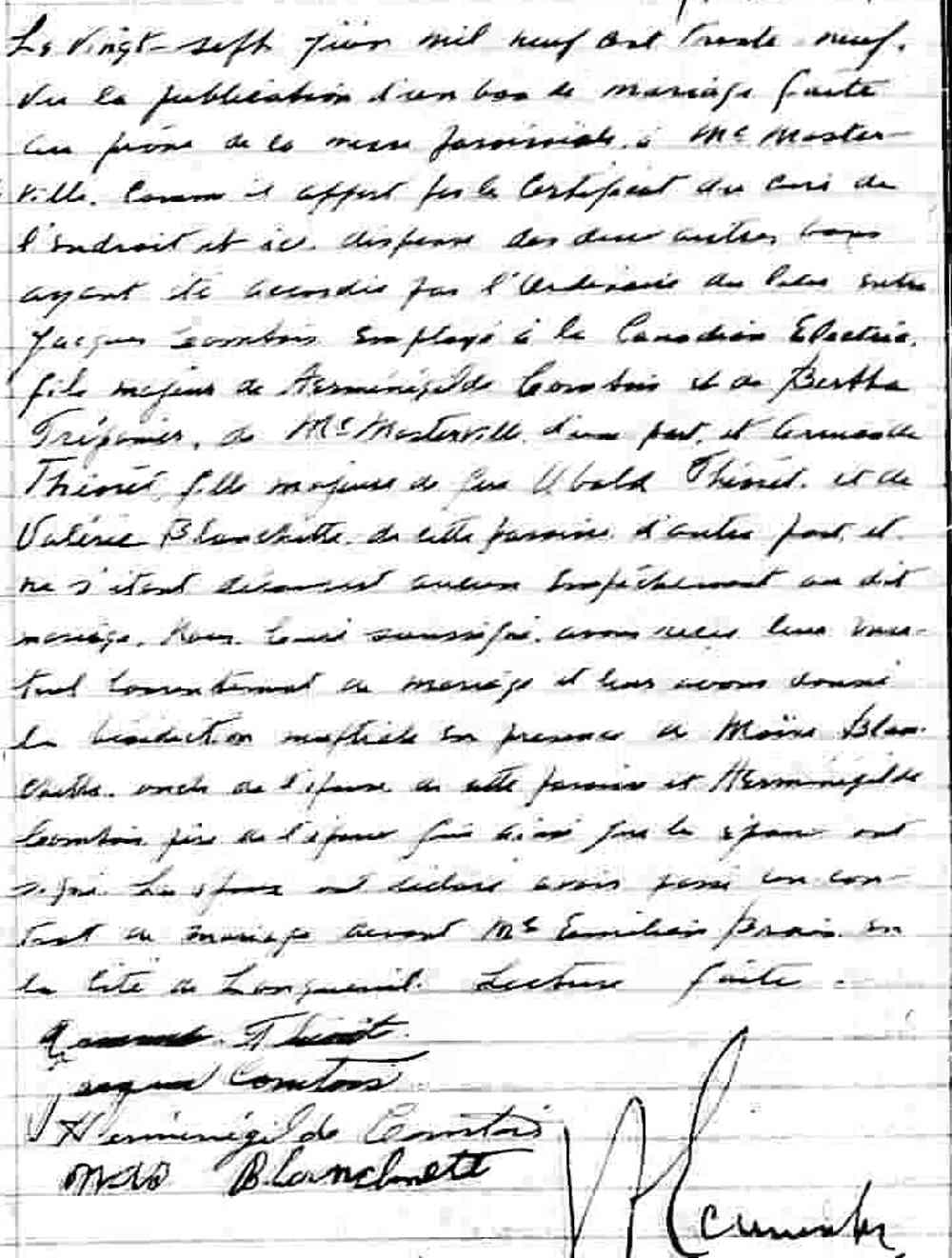 Mariage de Armande Théoret et Jacques Comtois à Saint Maxime comté de Chambly le 27 juin 1939