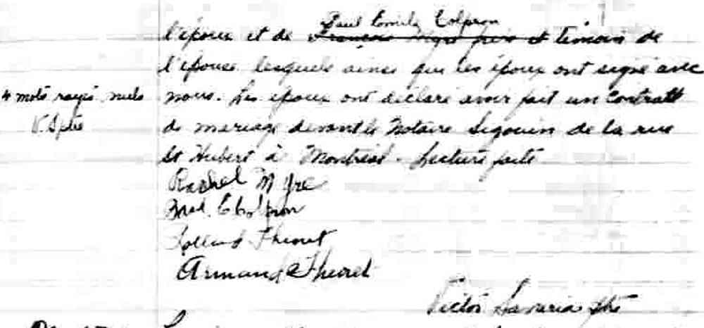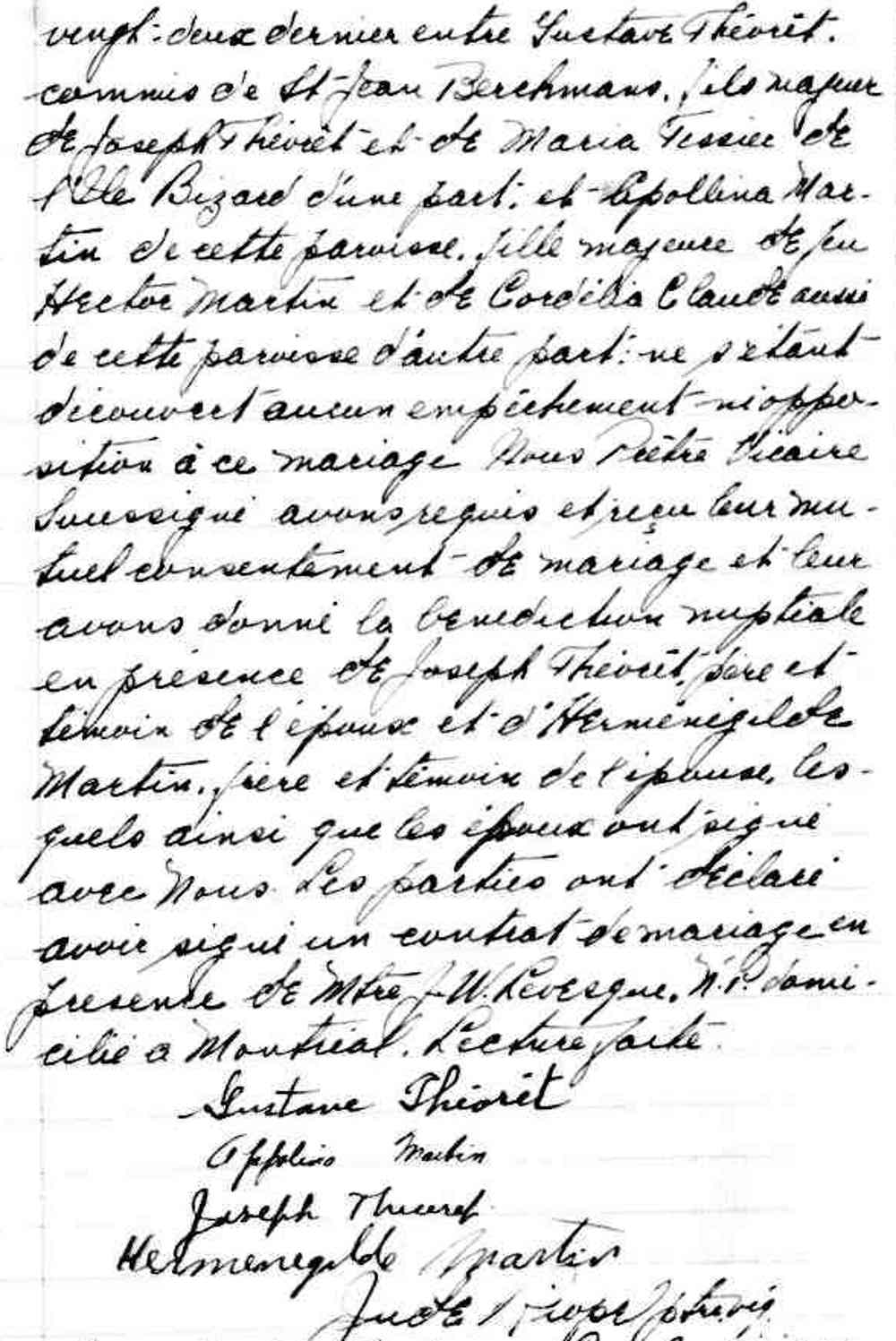 Mariage de Gustave Théoret et Apollina Martin à Saint Jean Baptiste de Montréal le 31 octobre 1939