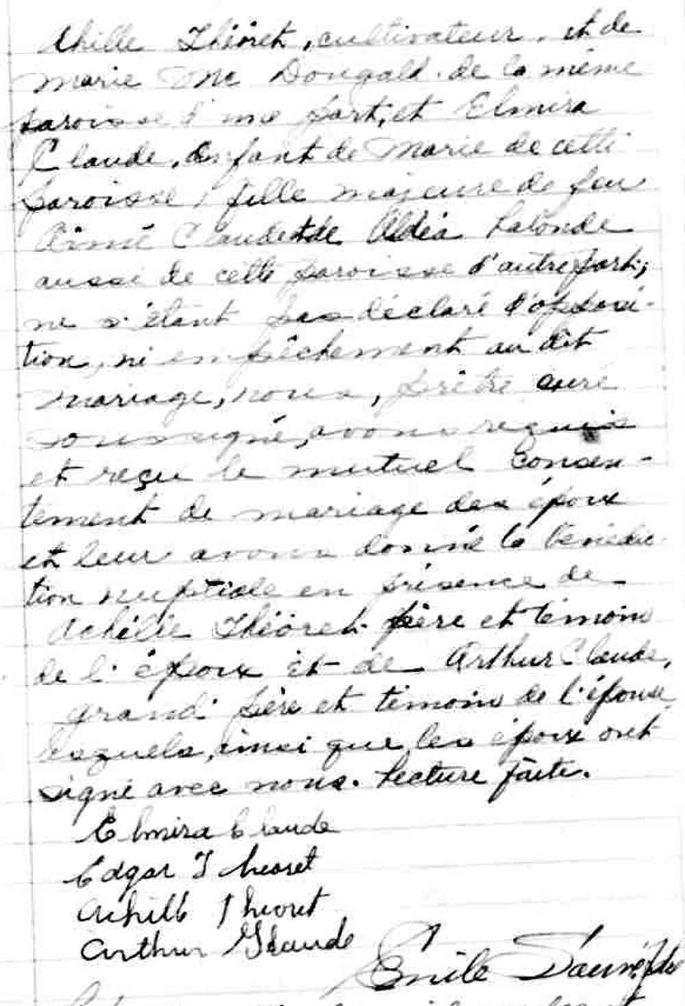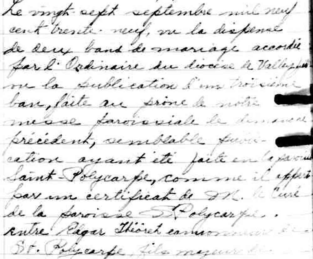 Mariage de Edgar Théoret et Elmire Claude à Saint Télesphore comté de Soulanges le 27 septembre 1939