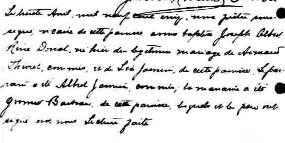 Mariage de Ubald Théoret et Marie Louise Blanchette à Saint Lambert (comté de Chambly) le 25 mai 1908 (cet acte est incomplet)