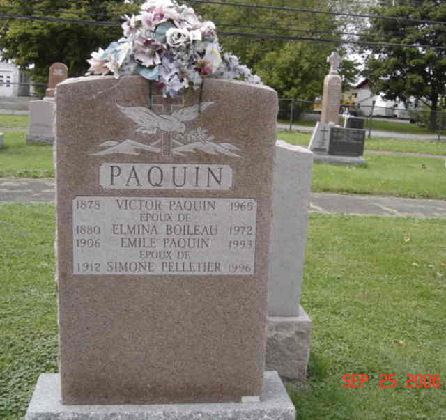 Pierre tombale de Elmina Boileau, épouse de Victor Paquin (R)
