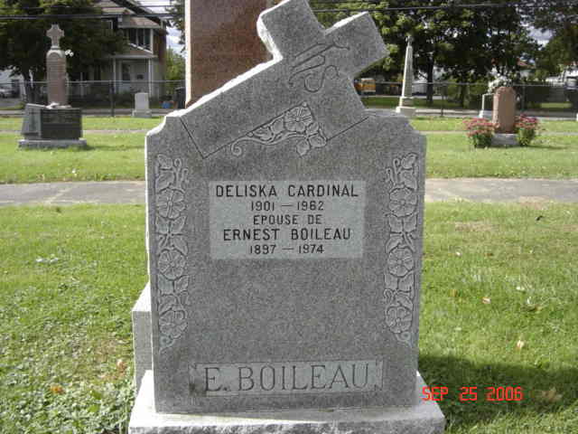 Pierre tombale de Ernest Boileau, époux de Deliska Cardinal (R)