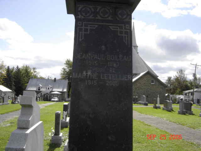 Pierre tombale de Jean Paul Boileau, époux de Marthe Letellier (R)