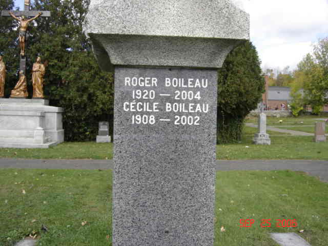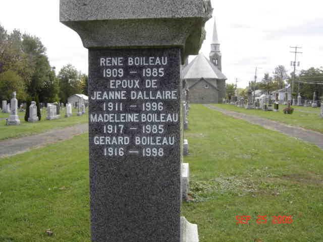 Pierre tombale de René Boileau, époux de Jeanne Dallaire, de Madeleine et Gérard Boileau (R)