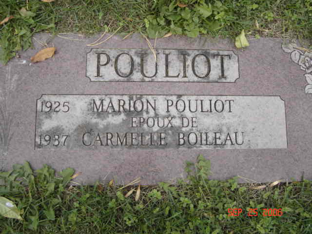 Pierre tombale de Carmelle Boileau, épouse de Marion Pouliot (R)
