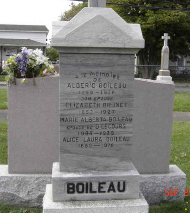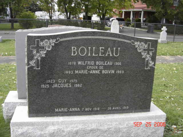 Pierre tombale de Wilfrid Boileau, époux de Marie Anne Boivin, et de