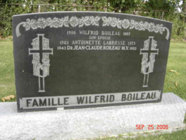 Pierre tombale de Wilfrid Boileau, époux de Antoinette Labrosse, et de Jean Claude Boileau (G2)