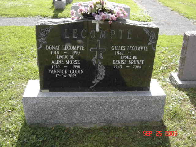 Pierre tombale de Denise Brunet, épouse de Gilles Lecompte (R)