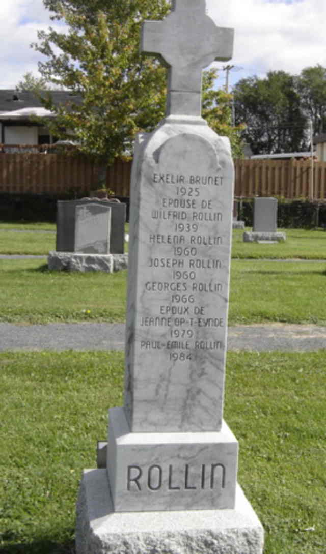 Pierre tombale de Exelir Brunet, épouse de Wilfrid Rollin (R)