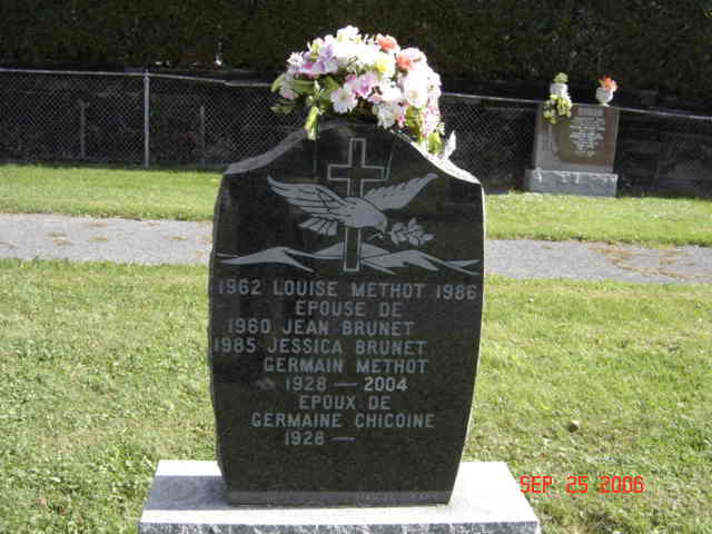 Pierre tombale de Jean Brunet, époux de Louise Méthot et Jessica Brunet (R)