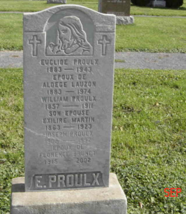 Pierre tombale de Florence Brunet, épouse de Joseph Proulx (R)