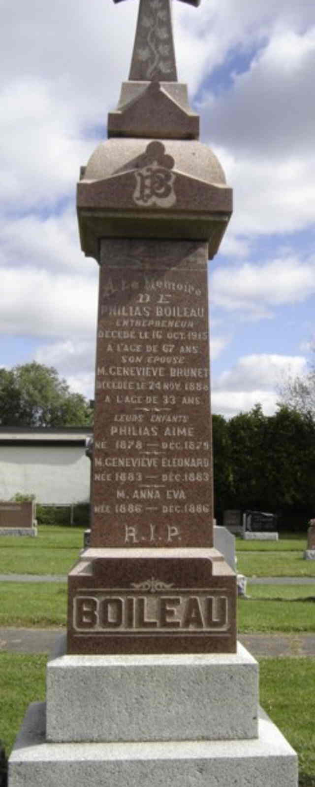 Pierre tombale de Geneviève Brunet, épouse de Philias Boileau (R)