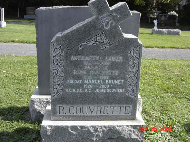 Pierre tombale du soldat Marcel Brunet, R. C. A. S. C. A. C. (R)