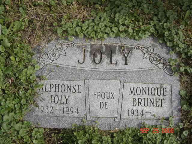 Pierre tombale de Monique Brunet, époux de Alphonse Joly (R)