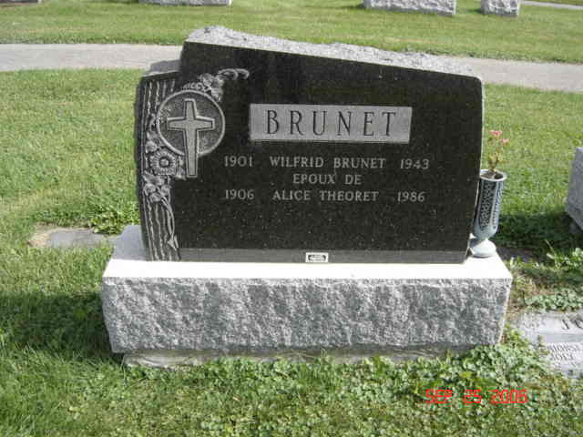 Pierre tombale de Wilfrid Brunet, époux de Alice Théoret (R)