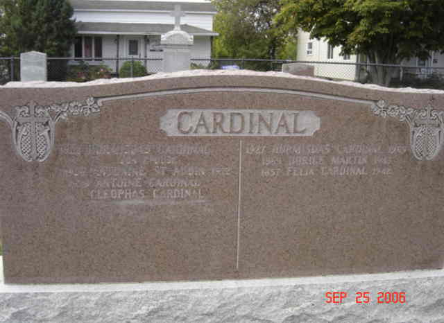 Pierre tombale de Hormisdas Cardinal, époux de Antonine St Aubin; de Antoine Cardinal; de Cléophas Cardinal; de Hormisdas Cardinal époux de Dorice Martin; et de Félix Cardinal (R)