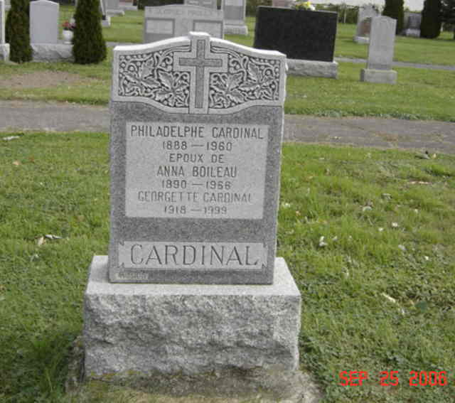 Pierre tombale de Philadelphe Cardinal, époux de Anna Boileau, et de Georgette Cardinal (R)