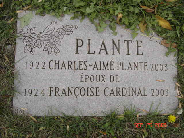 Pierre tombale de Françoise Cardinal, épouse de Charles Aimé Plante (R)