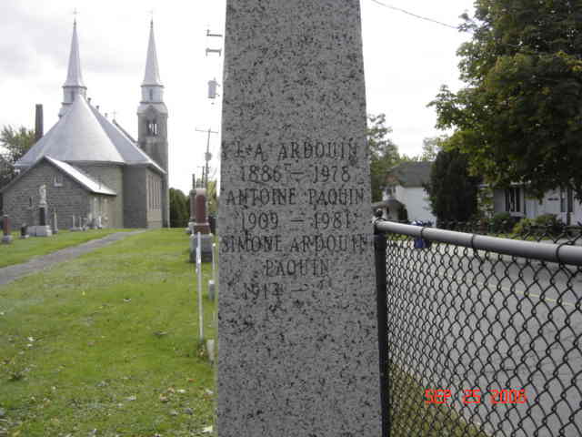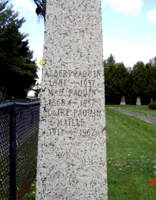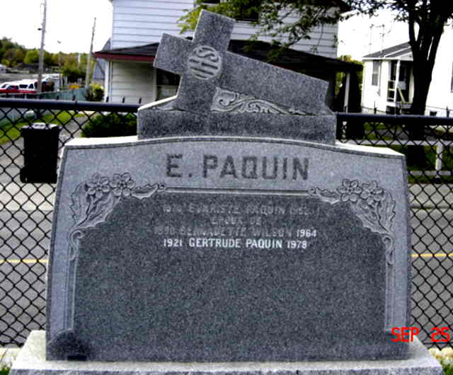 Pierre tombale de Evariste Paquin, époux de Bernadette Wilson; et de Gertrude Paquin (R)