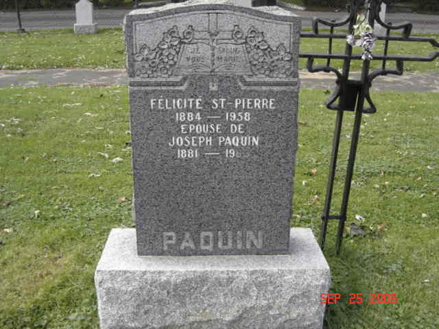 Pierre tombale de Joseph Paquin, époux de Félicité Saint-Pierre (R)