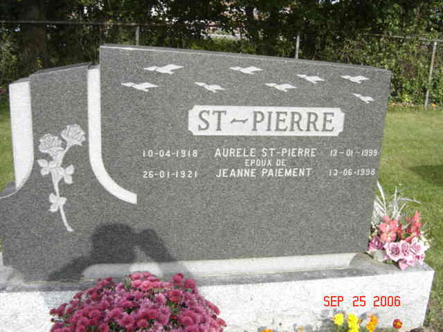 Pierre tombale de Aurèle Saint-Pierre, époux de Jeanne Paiement (G2)