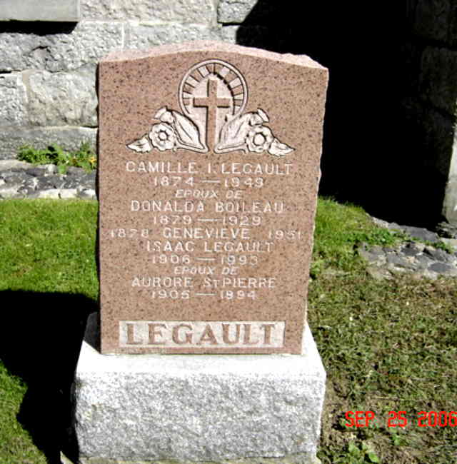 Pierre tombale de Aurore Saint-Pierre, épouse de Isaac Legault (G1)