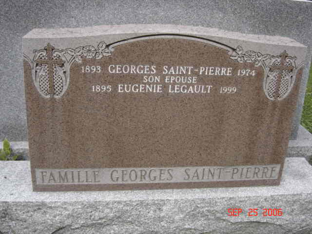 Pierre tombale de Georges Saint-Pierre, époux de Eugénie Legault (G1)