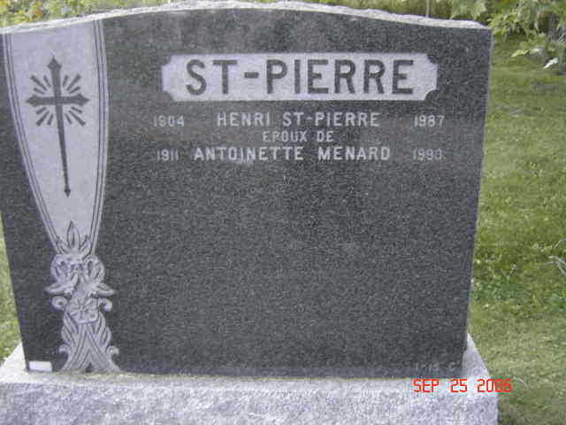 Pierre tombale de Henri Saint-Pierre, époux de Antoinette Ménard (G2)