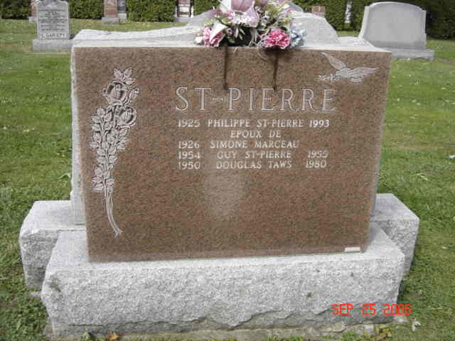 Pierre tombale de Philippe Saint-Pierre, époux de Simone Marceau; et de Guy Saint-Pierre (G1)