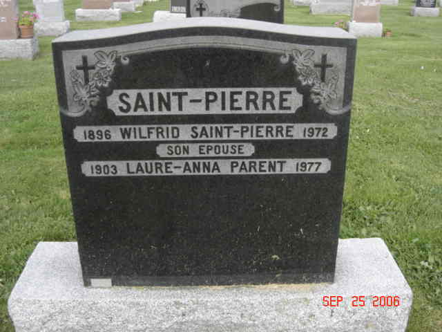 Pierre tombale de Wilfrid Saint-Pierre, époux de Laure-Anna Parent (G2)