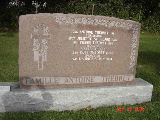 Pierre tombale de Juliette Saint-Pierre, épouse de Antoine Théoret (G2)
