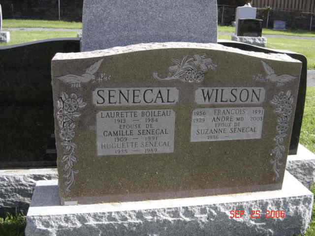 Pierre tombale de Camille Sénécal, époux de Laurette Boileau; de Huguette Sénécal; et de Suzanne Sénécal, épouse de André Boileau (R)
