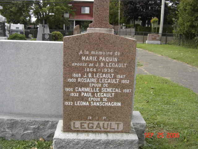 Pierre tombale de Carmelle Sénécal, épouse de Rosaire Legault (R)
