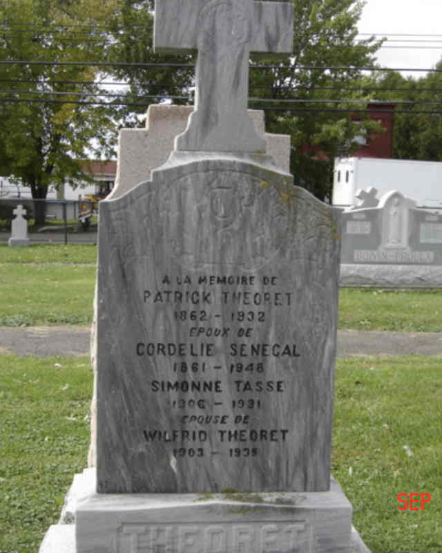 Pierre tombale de Cordélie Sénécal, épouse de Patrick Théoret (R)