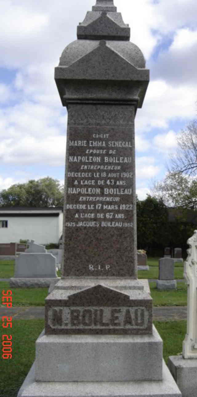 Pierre tombale de Emma Sénécal, épouse de Napoléon Boileau (R)