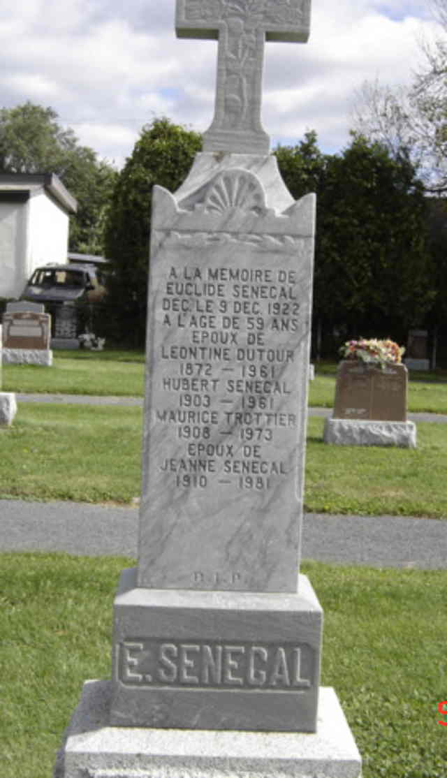 Pierre tombale de Euclide Sénécal, époux de Léontine Dutour; de Hubert Sénécal; et de Jeanne Sénécal, épouse de Maurice Trottier (R)