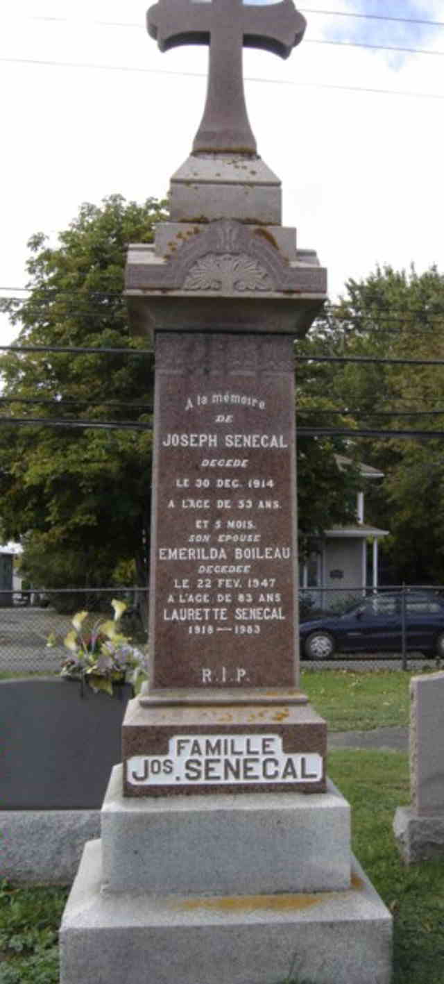 Pierre tombale de Joseph Sénécal, époux de Émérilda Boileau; et de Laurette Sénécal (R)