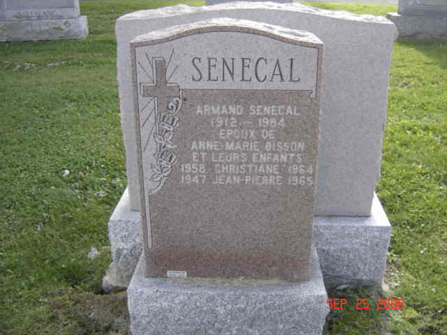 Pierre tombale de Armand Sénécal, épouse de Anne Marie Bisson et leurs enfants Christiane et Jean Pierre Sénécal (G2)