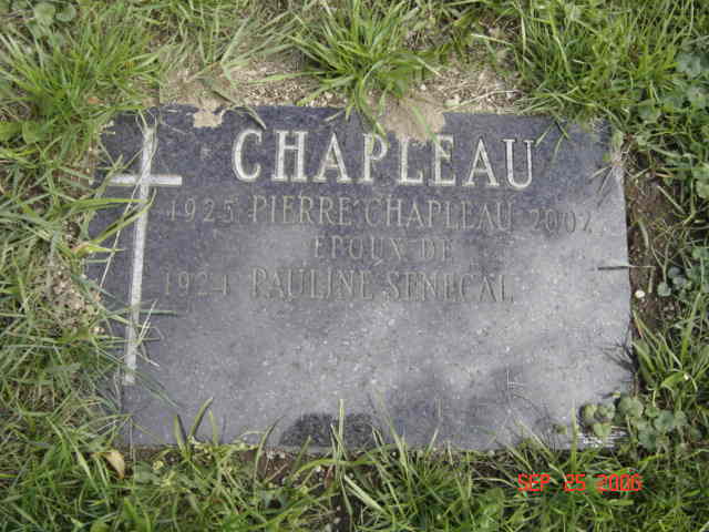 Pierre tombale de Pauline Sénécal, épouse de Pierre Chapleau (R)