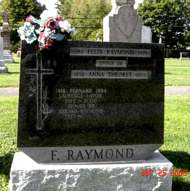 Pierre tombale de Émile Théoret, époux de Fernande Roy (R)