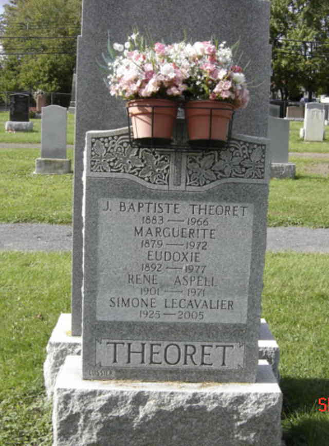 Pierre tombale de Rhéaume Théoret, époux de Marguerite Cardinal; et de Micheline Théoret (R)