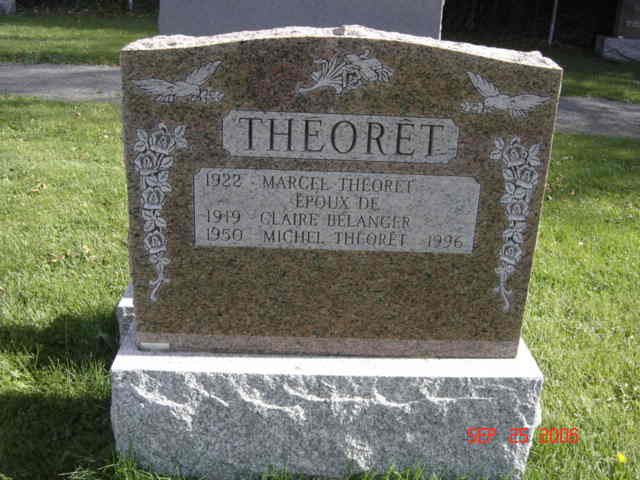 Pierre tombale de Marcel Théoret, époux de Claire Bélanger; et de Michel Théoret (R)