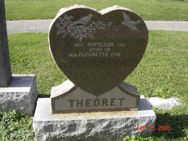 Pierre tombale de Napoléon Théoret, époux de Fleurette Cyr (R)
