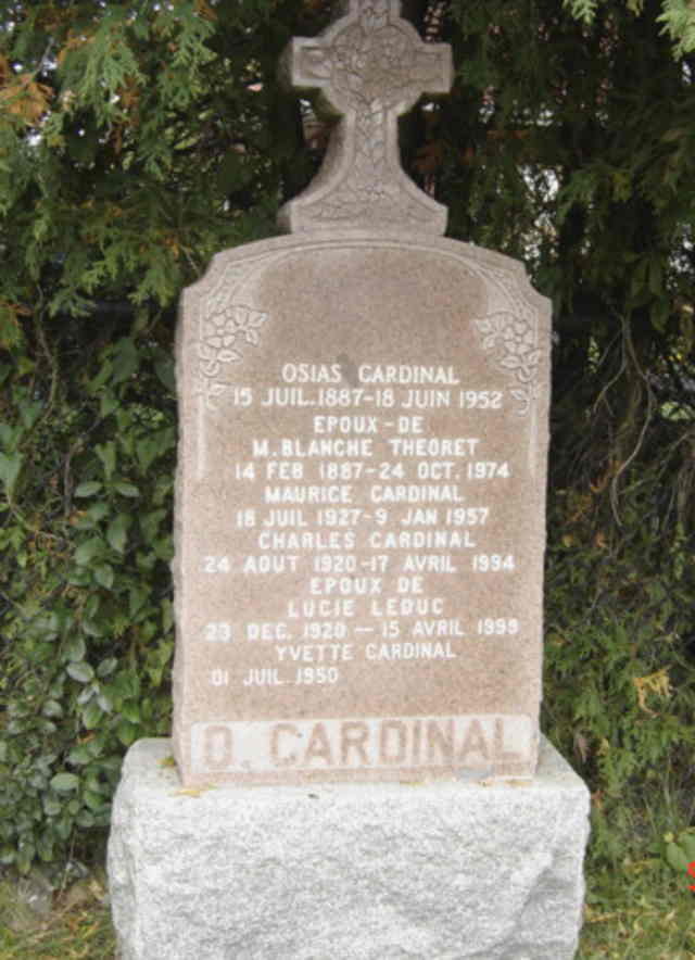 Pierre tombale de Blanche Théoret, épouse de Osias Cardinal (R)